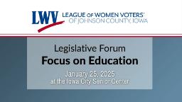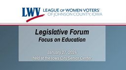 - League of Women Voters Legislative Forum: Focus on Education (Jan. 27, 2024)