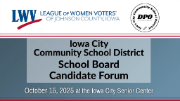 - League of Women Voters Candidate Forum: Iowa City Community School District School Board (Oct. 15, 2025)