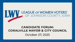 - League of Women Voters Forum: Coralville Mayor and City Council (Oct. 27, 2025)