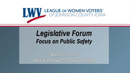 - League of Women Voters Legislative Forum: Focus on Public Safety (Mar. 30, 2024)
