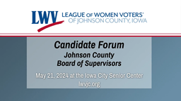 - Johnson County Board of Supervisors Democratic Primary Candidate Forum (May 7, 2024)